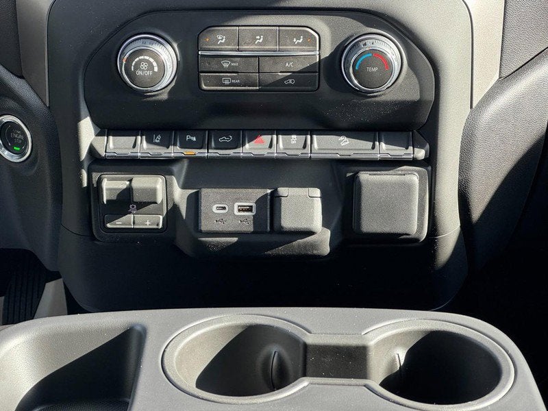 This Silverado also includes the Custom Value Package, adding convenience and safety features such as remote vehicle start, theft-deterrent system, 120-volt power outlets in the interior and cargo bed, second-row USB charge ports, rear-window defogger, a 10-way power driver seat, LED cargo area lighting, EZ Lift power lock and release tailgate, front and rear park assist, lane change alert with side blind zone alert, rear cross traffic alert, and heated, power-adjustable trailering mirrors with auto-dimming. The Z71 Off-Road Package enhances confidence with off-road suspension, twin-tube shocks, and hill descent control, while black tubular assist steps, LED roof marker lamps, front recovery hooks, and 20-inch machined aluminum wheels with accents and spokes complete the bold, work-ready exterior.