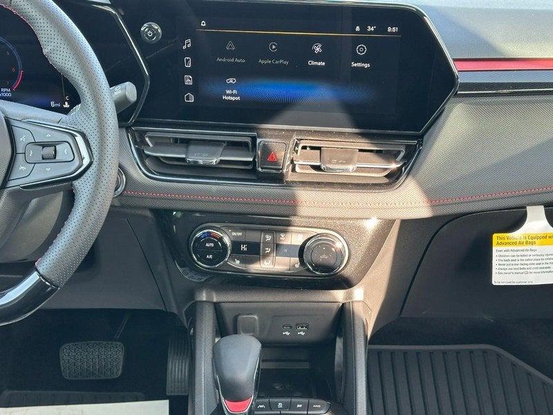 Now available at Boland Chevrolet, this bold and sporty 2026 Chevrolet Trailblazer AWD RS delivers standout style, advanced technology, and confident all-wheel-drive capability, finished in eye-catching White Sands with a Jet Black interior accented by striking red details. Powered by the responsive ECOTEC 1.3L Turbo engine and paired with a smooth-shifting 9-speed automatic transmission, this Trailblazer RS offers an engaging driving experience enhanced by an engine stop-start system with override, engine air filtration monitor, and trailer wiring connectivity for added versatility. Inside, the cabin is designed for comfort and control with EVOTEX seating material, a 10-way power driver seat with lumbar support, heated front seats, a heated wrapped flat-bottom steering wheel, a 40/60 split-folding rear seat, flat-folding front passenger seatback, and a rear center armrest for added convenience. Technology takes center stage with an impressive 11-inch HD color touchscreen infotainment system featuring wireless Apple CarPlay and Android Auto, Bluetooth® audio streaming for two devices, voice command pass-through, SiriusXM capability, an 8-inch digital driver information center, OnStar Basics, keyless open and start, remote vehicle start, wireless charging, multiple USB ports, and an upgraded Bose premium 7-speaker audio system paired with adaptive cruise control for a more refined drive. Exterior styling is unmistakably RS, highlighted by 19-inch high-gloss black machined aluminum wheels, RS lettering and black ornamentation, black bowtie badges, dual-outlet exhaust, LED headlamps, LED tail lamps, signature LED daytime running lamps, deep-tinted rear glass, roof side rails, heated power-adjustable mirrors, a hands-free programmable power liftgate with LED logo projection, a dual-pane power sunroof, all-weather floor mats, and a compact spare tire for added peace of mind. Safety is equally impressive with Chevy Safety Assist technologies including automatic emergency braking, forward collision alert, front pedestrian braking, lane keep assist with lane departure warning, IntelliBeam automatic high beams, following distance indicator, HD rear vision camera, rear cross traffic alert, rear park assist, lane change alert with side blind zone alert, tire pressure monitoring with tire fill alert, and Teen Driver technology. To learn more about this sporty and well-equipped Trailblazer RS or to schedule your test drive, visit www.bolandchevrolet.us or call 573-213-1055. We make every effort to ensure all vehicle information, features, and specifications are as accurate as possible; however, please confirm all details with a member of our sales team at the dealership to ensure complete accuracy prior to purchase. This vehicle currently comes with the Boland Lifetime Powertrain which covers your vehicle's powertrain, which includes your engine, transmission, transfer case, all-wheel drive assembly, and drivetrain components.