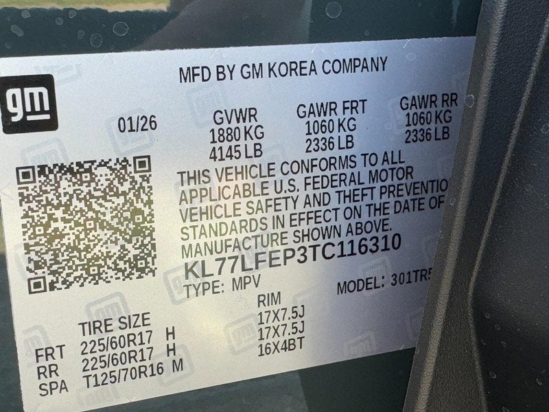 The 2026 Chevrolet Trax 1LS in sophisticated Cypress Gray with a modern Jet Black and Gray interior accented in blue, now available at Boland Chevrolet, is a smart and efficient compact SUV designed to deliver outstanding value, practicality, and everyday comfort. Powered by the responsive ECOTEC 1.2L turbocharged engine paired with a smooth 6-speed automatic transmission, this Trax offers a balanced combination of performance and fuel efficiency, while features like StabiliTrak stability control, traction control, and electric power steering provide a confident and composed driving experience. Its sleek exterior styling is highlighted by LED headlamps, daytime running lamps, a sporty rear spoiler, and bold lower body moldings, giving it a clean and contemporary look that stands out on the road.Inside, the cabin is thoughtfully designed for comfort and convenience, featuring durable seating, a 6-way manual driver seat, and a versatile 60/40 split-folding rear seat that allows you to easily adapt the space for passengers or cargo. Technology is seamlessly integrated with an 8-inch Chevrolet Infotainment 3 touchscreen system offering wireless Apple CarPlay and Android Auto compatibility, along with steering wheel-mounted audio and phone controls, SiriusXM capability, and a four-speaker sound system. Additional features like cruise control, active noise cancellation, power windows, and deep-tinted rear glass enhance the overall driving experience. The available LS Convenience Package adds even more comfort with heated front seats, remote vehicle start, heated power-adjustable mirrors, and stylish 17-inch silver-painted aluminum wheels.Safety remains a top priority with Chevy Safety Assist, which includes forward collision alert, automatic emergency braking, front pedestrian braking, lane keep assist with lane departure warning, following distance indicator, and IntelliBeam automatic high beams. The Driver Confidence Package further enhances awareness with rear park assist, rear cross traffic alert, and lane change alert with side blind zone alert, while additional features like a rear vision camera, tire pressure monitoring system, and theft-deterrent system provide added peace of mind on every drive.This vehicle currently comes with the Boland Lifetime Powertrain which covers your vehicle's powertrain, including your engine, transmission, transfer case, all-wheel drive assembly, and drivetrain components, adding long-term value and confidence to your purchase. Don't miss your opportunity to own this affordable, efficient, and well-equipped Trax-visit www.bolandchevrolet.us or call 573-213-1055 today for more information. We make every effort to ensure all vehicle information, features, and specifications are as accurate as possible; however, please confirm all details with a member of our sales team at the dealership to ensure complete accuracy prior to purchase.